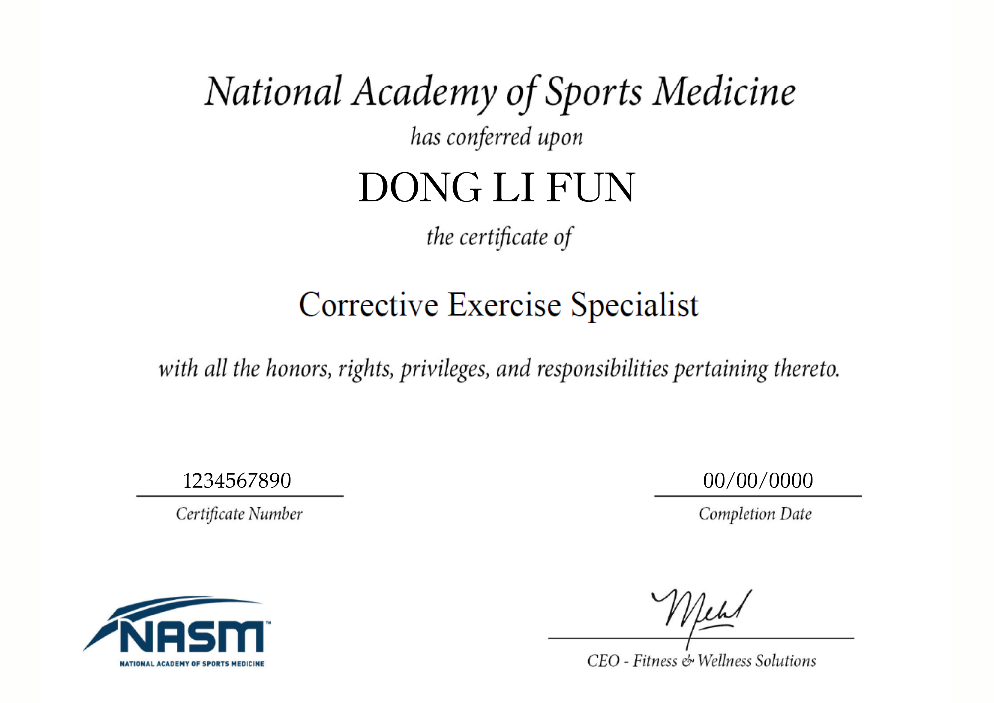 本人將會參加美國國家運動醫學學會(National Academy of Sports Medicine,以下簡稱NASM)的運動矯正專家(International NASM-CES Certification)課程。我已經檢閱並了解這份免責書,並同意以下內容: