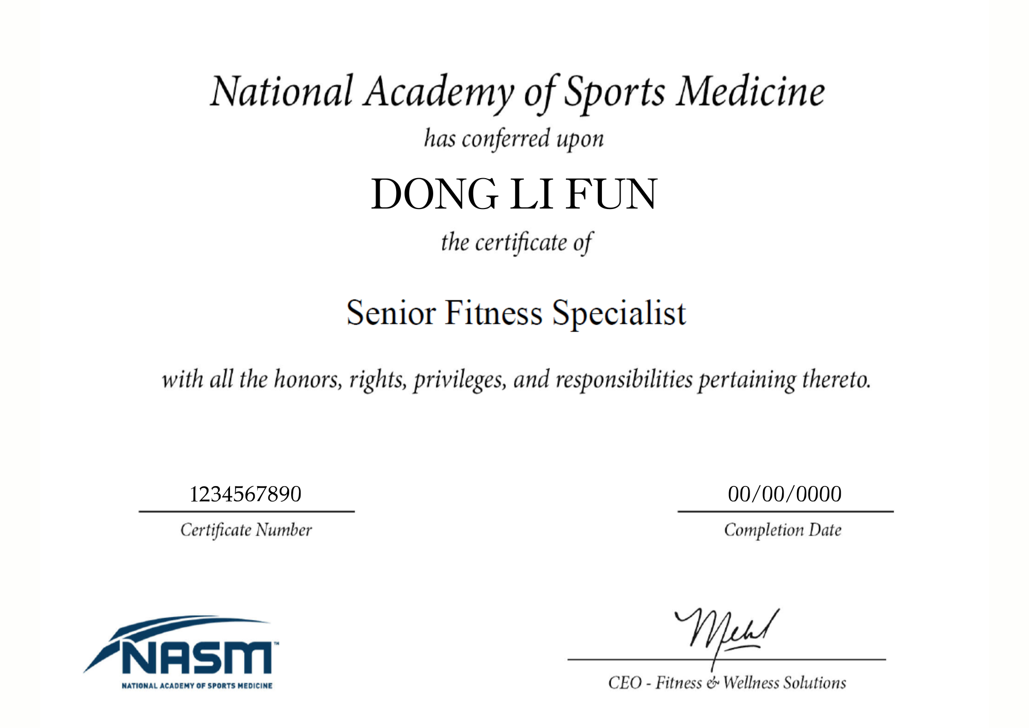 本人,將會參加美國國家運動醫學學會(National Academy of Sports Medicine,以下簡稱NASM)的銀髮族運動訓練專家(Senior Fitness Specialization)課程。我已經檢閱並了解這份免責書,並同意以下內容: